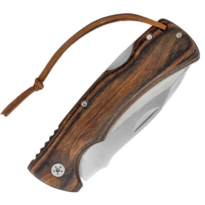 Albainox Taschenmesser im altbewährten Stil. Zwischen den mattierten Backen aus rostfreiem Edelstahl sitzen braune Pakkaholz-Schalen.Informationen zur Produktsicherheit