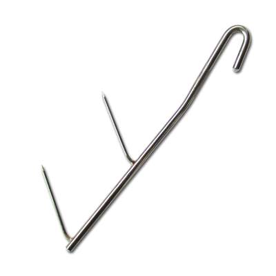 Profi Räucherhaken der Angel Domäne. Diese sind hochwertig verarbeitet und sind rostfrei.Die beiden aufgesetzten und spitzen Dorne halten das Raüchergut fest. Diese sind leicht nach oben ausgerichtet, so dass auch bei Bewegungen sicher nichts runter fallen kann. Der leichte Bogen vor dem Einhänkehaken verhindet ein Kippen des Räucherguts. Egal ob Sie kleine Filets räuchern möchten oder große Aale, ganze Fische etc. Die Räucherhaken fassen diese gut und garen sicher in Ihrer Kammer. Einer langen Verwendungszeit für die Angel Domäne Räucherhaken Profi steht demnach nichts im Wege.Informationen zur Produktsicherheit