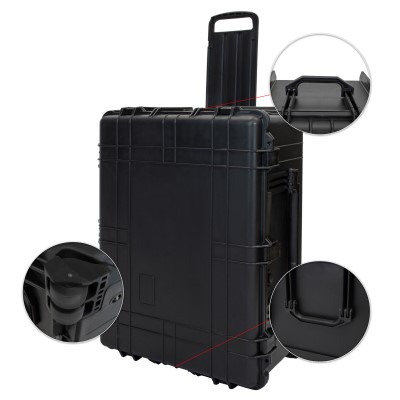 Die Outdoor Fatbox ist eine professionelle Transportbox für empfindliche Geräte mit Fächern zum Selbsteinteilen. Sie ist bruchsicher, wasserdicht, staubdicht und Innen optimal gepolstert, um Ihre Foto-/Videoausrüstung, (Elektro-)Multirollen. Ihre GoPro Ausrüstung und viele andere empfindliche Geräte können Sie so sicher von A nach B transportieren. Somit sind sie in jeder Lage vor allen nur erdenklichen Einflüssen 100% geschützt. Ummantelt von einem ultra-stabilen Gehäuse für 100%igen Schutz des Inhalts besteht der Korpus aus extrem stabilem Kunststoff, welches die Wucht von Stößen optimal abfängt und diese absorbiert. Neu im Programm ist nun auch dieser Fatbox Trolley. Dies ist eine komplette Fatbox mit eingebauten Rädern gummierten Rädern und einen herausziehbaren Handgriff zum ziehen.Für alle empfindlichen Geräte anpassbar: Die Fatbox® Outdoor Schutzkoffer-Trolleys