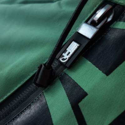 - Zwei Seitentaschen mit Reißverschluss und breiter Schutzklappe