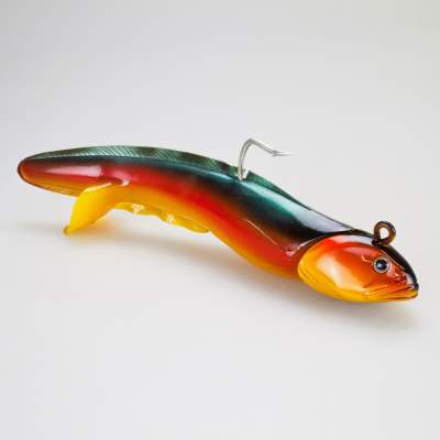 Scarry Jerry ist die perfekte, lebensechte Nachahmung der Steinbeißer und Aalmutter - ein wichtiger Teil der Nahrungsquelle für Heilbutts im flachen Wasser. Er kommt in realistischen und in Lockfarben, auf die sich Heilbutt, Kabeljau usw. gierig stürzen. Kaum ein anderer Köder konnte in der Vergangenheit so überzeugen wie die Magic Minnow Meeresreihe. Das Laufverhalten ist einfach nur phantastisch und die Lackierung des Bleikopfes einfach nur als realistisch zu bezeichen. Zudem ist der Scary Jerry mit Aktiven Augen ausgestattet, in die sich Heilbutts, Dorsche und anderer größere Meeresräuber auf den ersten Blick verschießen. Das Gummimateral des Köders ist ebenfalls besonders hochwertig, was man auch gleich spürt, wenn man den Köder in der Hand hält. Durch die speziellen Feinheiten in der Köperstruktur wird dem Scary Jerry jede Menge leben eingehaucht und wird auch Ihre Fangerfolge bereichern. Alle werden mit hochwertigen, chemisch geschärften Hochseehaken, langlebiger Lackierung und aktiven Augen gefertigt. Inklusive 1 zusätzlichem Ersatzkörper!