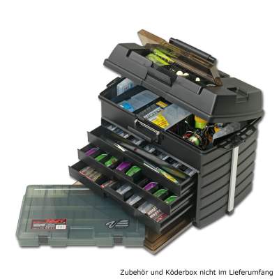 Der größte Angelkoffer im MEIHO-Programm. Hergestellt aus extrem widerstandsfähigem Polymer-Kunststoff und verstärkt durch einen Aluminium-Seitenrahmen. Scharniere und Verschlußhalterungen sind aus Edelstahl. Alle Verschlüsse sind gegen unbeabsichtigtes Öffnen gesichert, damit auch bei starkem Seegang oder holperiger Autofahrt alles an seinem Platz bleibt. Die 4 Schubladen können bei Bedarf durch vier Boxen des Typs VS-3045 (1D-F 303-410) ersetzt werden. Durch die dunkle Einfärbung wird mit Hilfe spezieller Pigmente ein Schutz des Inhaltes vor ultravioletter Sonnenstrahlung erzielt. Dies verhindert (bei geschlossenem Deckel) das Ausfärben von Kunstködern oder auch Posen. Auch monofile Schnur ist in diesen Boxen bestens aufgehoben. Die vier Schubladen können bei Bedarf durch 4 Boxen des Typs VS-3045 (Nicht im Lieferumfang) ersetzt werden.Seit Jahren ein Garant für Qualität - MEIHO VERSUS Geräteboxen