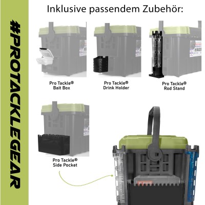 Vielseitige Aufbewahrungslösung: Getränke und mehr mit dem Pro Tackle Hard Drink Holder an der AngelboxseiteDer Pro Tackle Hard Drink Holder kann bequem im multifunktionalen Montagefach an der Seite der Angelbox angebracht werden. Dies bietet nicht nur Platz für Wasserbecher und Getränke, sondern ermöglicht auch die Aufbewahrung häufig genutzter Gegenstände wie zusammenklappbare Regenschirme. |
