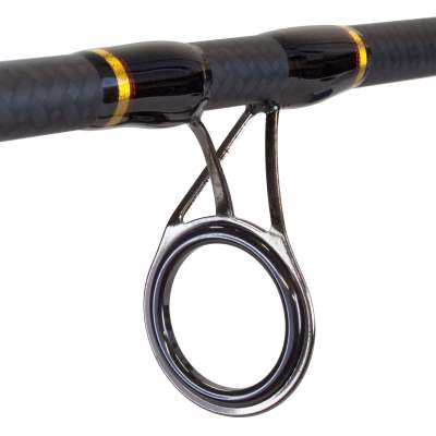Ein Handteil, dass in der Länge ideal an die Modelle angepasst wurde sorgt dafür, dass bei jedem Modell ein perfektes Handling vorliegt und durch die erweiterten Komponenten zu einer günstigen Rutenserie führt, die andere Ruten in dieser Preisklasse in den Schatten stellt. Die 3-Steg Ringe mit SIC Einlage lassen die Schnur geräuschfrei hindurchgleiten, wodurch große Wurfweiten erzielt werden können. Das dezente Design mit Carbonmatten Optik und edlen Zierwicklungen runden diese Rutenserie ab.Informationen zur Produktsicherheit