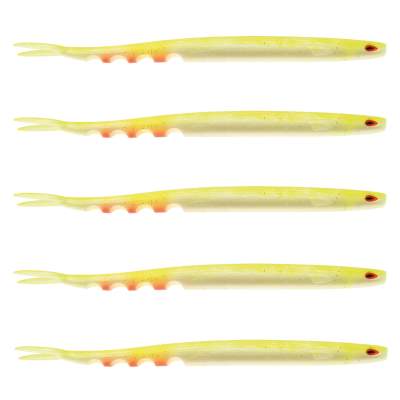 Das von Westin sogenannte "Cut-Body-Design" erfolgt mit vier dieser "Cuts" im hinteren Teil des Körpers. Diese Cuts erzeugen Schwingungen unter Wasser, auf die die großen Raubfische interessiert reagieren. Mit feinen Zupfern geführt reagiert der Slim Teez mit einer erhöhten Beweglichkeit mit einer diskreten Schwanzaktion, die sich an Tagen mit Bissen bezahlt macht, wenn die Raubfische auf andere Köder nicht beißen.Informationen zur Produktsicherheit